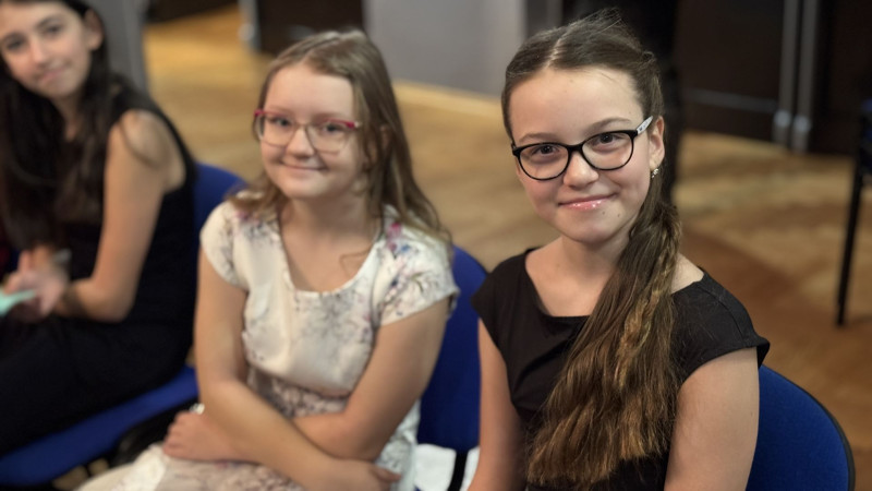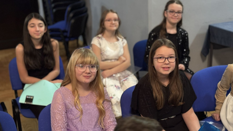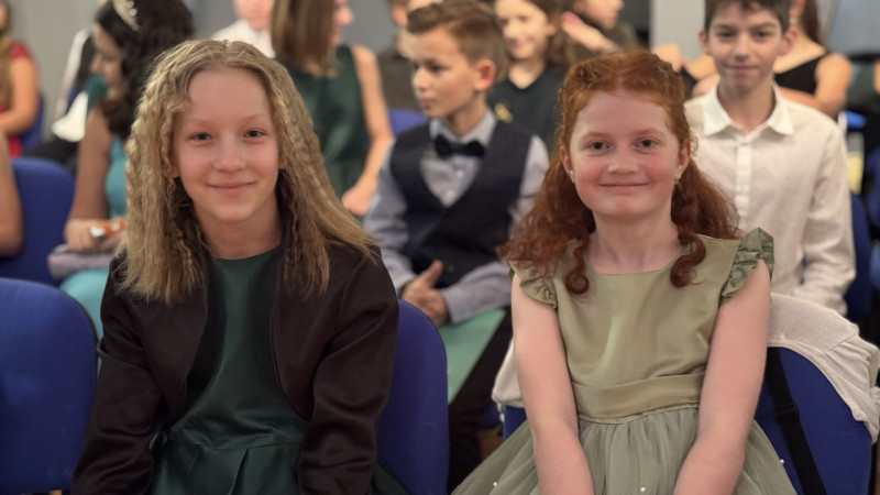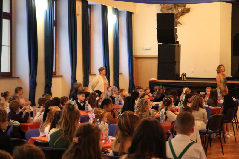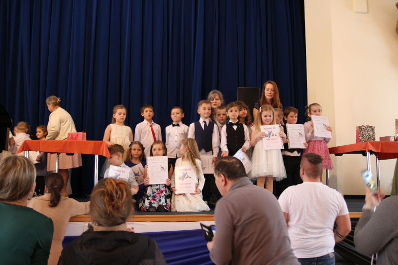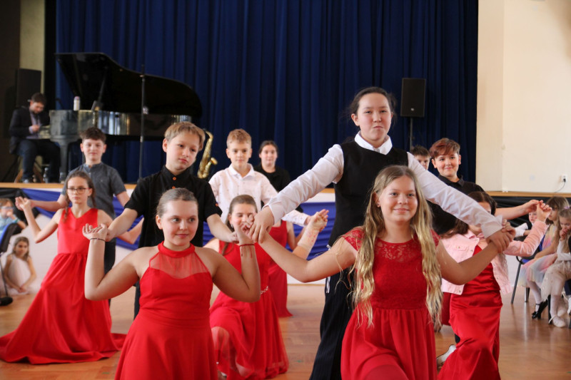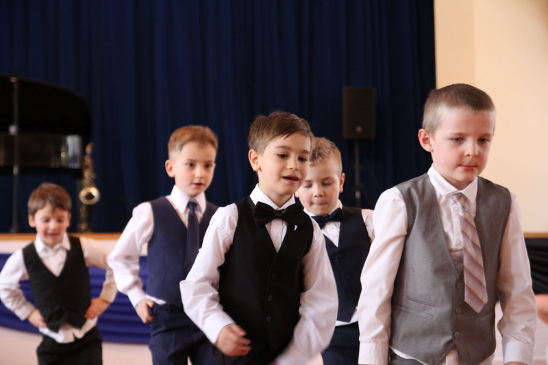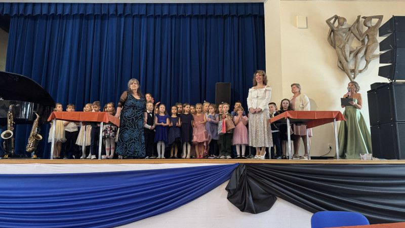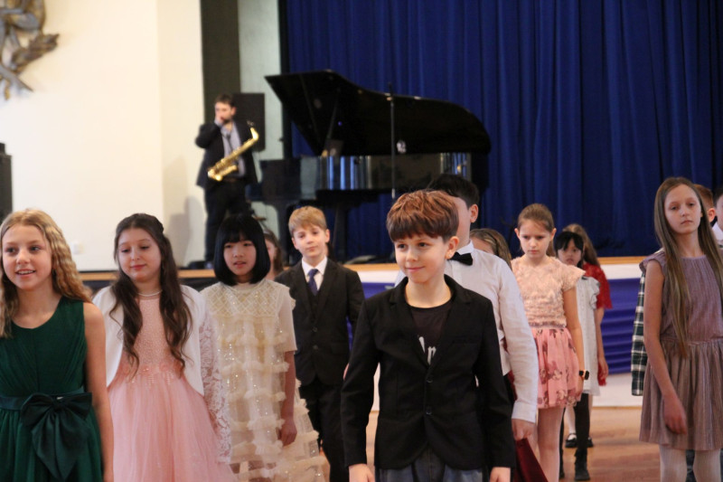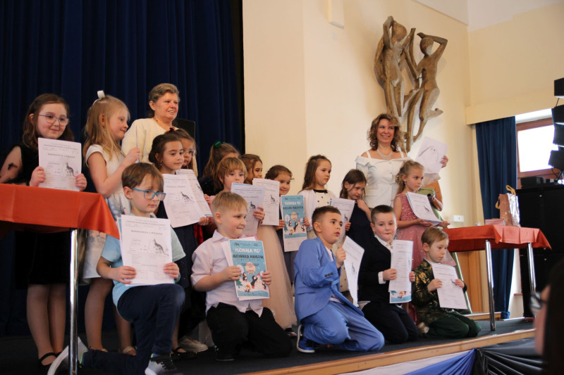 V sále se to jen hemžilo malými gentlemany v košilích a mladými dámami v nádherných šatech. Všichni přítomní byli neuvěřitelně vyfiklí a elegantní, což dodalo celému odpoledni neopakovatelný šmrnc. Vrcholem programu bylo slavnostní předávání pololetního vysvědčení, které si děti v tomto noblesním prostředí náležitě užily.