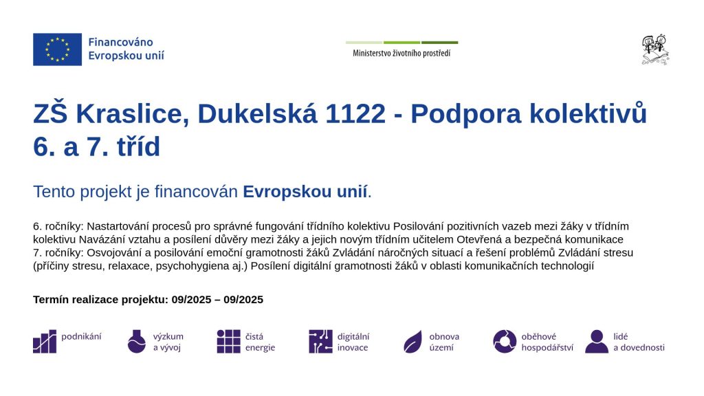 je spolufinancován Evropskou unií. Projekt je zaměřen na jedno z/kombinaci následujících témat: personální podpora, osobnostně sociální a profesní rozvoj pedagogů, aktivity rozvíjející ICT, extrakurikulární a rozvojové aktivity, spolupráce s rodiči dětí/žáků.